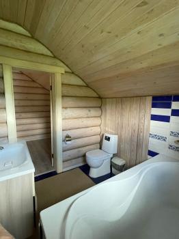 На первом этаже расположена просторная кухня-гостиная, санузел, душевая.