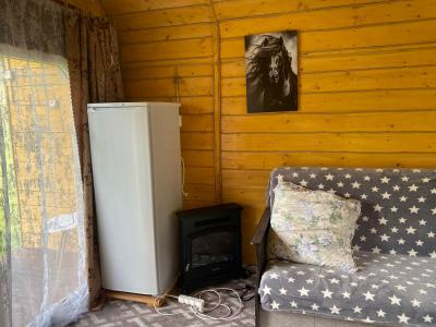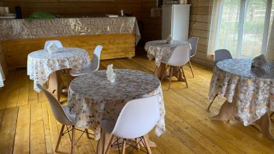 5 уютных домиков, внутри есть всё необходимое для проживания: холодильник, тумба, удобные кровати, постельное белье, стол, стулья, обогреватель, эл. чайник, посуда.