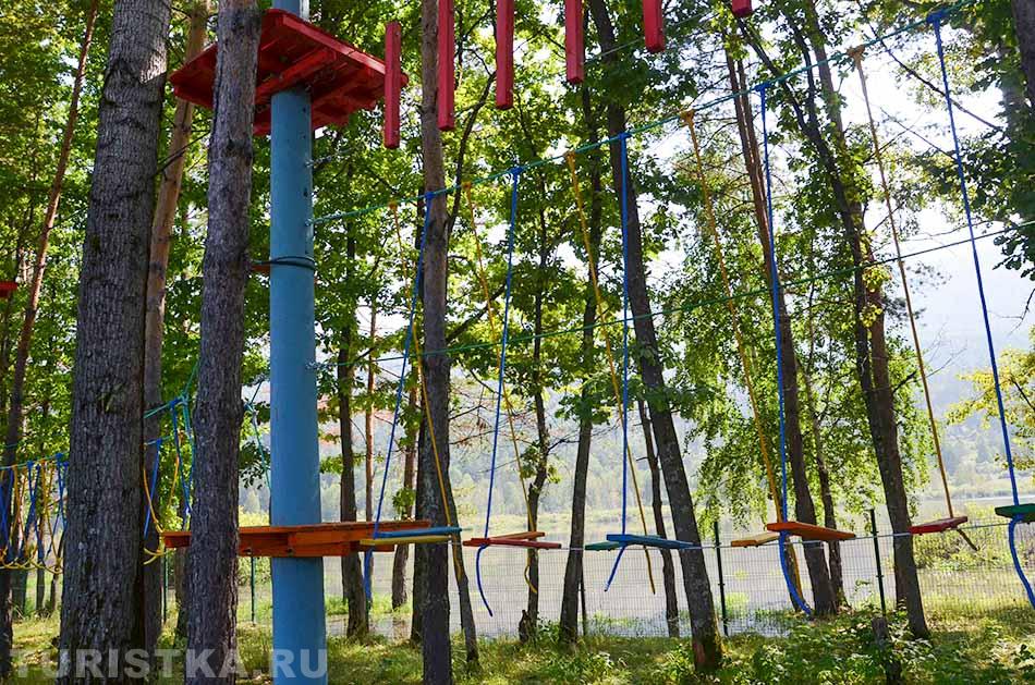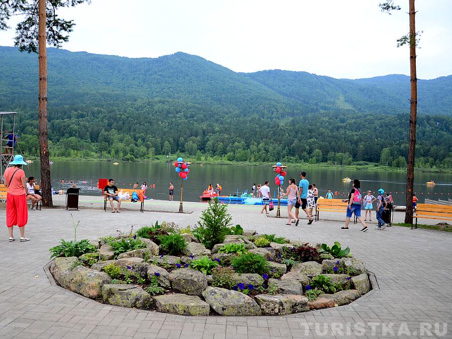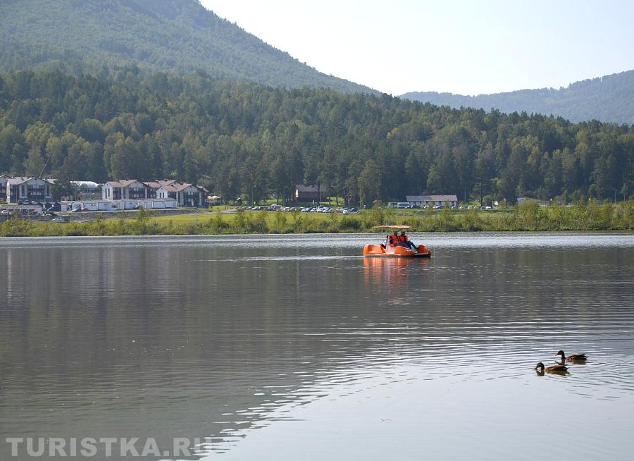 Чтобы увидеть озеро с высоты, нужно подняться на гору Малая Синюха на подъемнике.
