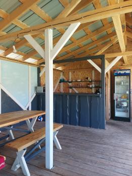 Общая кухня для всех номеров со всеми удобствами, плита, микроволновка, чайник, посуда, кастрюли, 2 стола. Площадь кухни 32 м2.