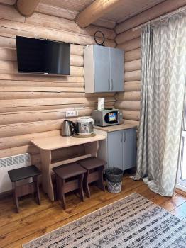 - Мини-Кухня (стол, стулья, микроволновка, чайник, мультиварка, холодильник, необходимая посуда).