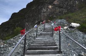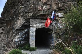 Большая штольня находится в горе на высоте. Сейчас к ней ведет лестница. За проход в штольню берется оплата. Лестница и протянутое освещение в штольне стоит того, чтобы заплатить.