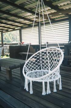 - Двухспальная кровать, тумбочка, полка для одежды, столик и стул.