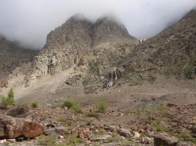 С северо-востока ущелье замыкает величественная гора Кара-Таш («Черный камень») высотой 3534 м как страж, охраняющий путь в горную страну.