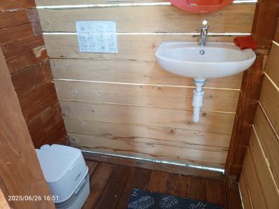 Биотуалеты и раковина с родниковой водой во всех домиках, кроме юрты.