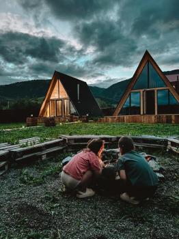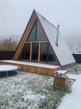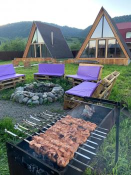 Вы можете забронировать один из двух полностью благоустроенных домиков с панорамным видом на горы.