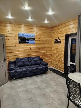 Дом состоит из 2-х комнат и гостиной с кухонной зоной.