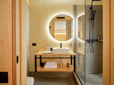 - Ванная комната оснащена современной сантехникой, а также премиальной косметикой и гигиеническими принадлежностями. Вас порадует качественный текстиль, а также мягкие полотенца и халаты.
