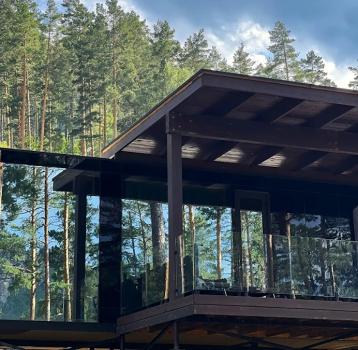 - Эстетика экологичной жизни. Стильный минималистичный дизайн интерьеров, террасы и панорамные окна - пространство, где так приятно и естественно происходит погружение в мир природы Алтая.