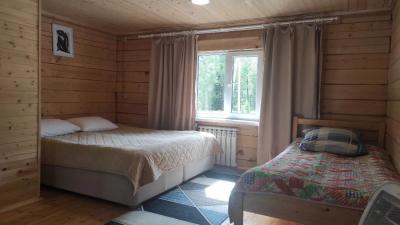 - 1 трехместный домик с двуспальной и односпальной кроватями.