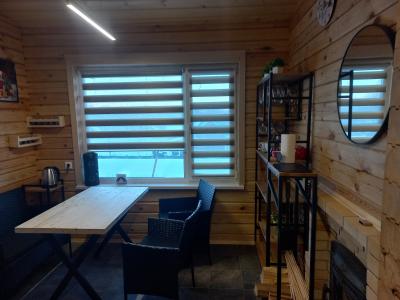 Домики двухкомнатные, одна комната это гостиная-кухня, вторая спальня.