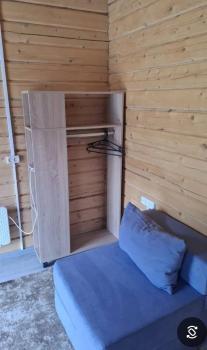 1 этаж: 2 раскладных дивана и кухня-гостиная (холодильник, плита, чайник).