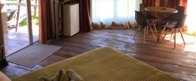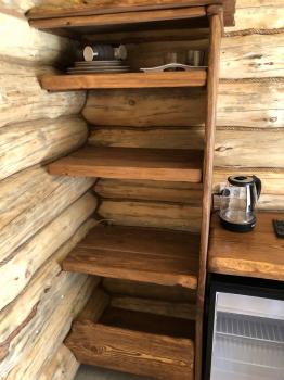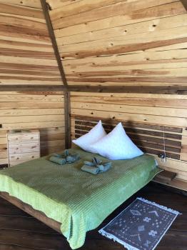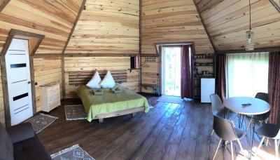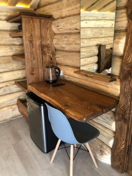 Круглогодично. Тёплый пол, отдельный санузел в номере (душ, туалет), фен, полотенца, посуда, холодильник, стол, стул, телевизор, кресло-кровать, полочки, романтическая подсветка, панорамные окна, терраса (стол и стулья).