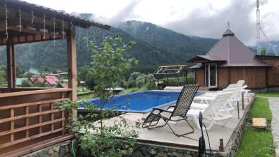 До реки Катунь 5 минут пешком, из беседки и бассейна открывается вид на слияние рек Узнезя и Катунь.