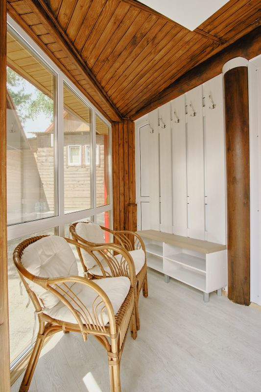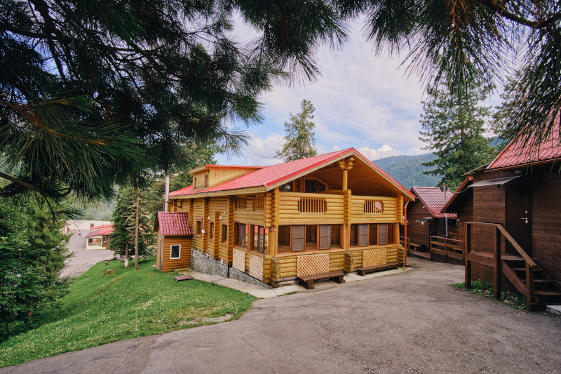 - Коттедж №3/2. Кедровый двухэтажный коттедж с общим входом на второй этаж. Площадь 68 кв. м. Большой хол с отдельными входами в комнаты. Четыре спальни, в каждой есть выход на балкон, двуспальная кровать. Две ванные комнаты на этаже: WC, раковина, душевая кабина. В спальнях есть телевизор, холодильник, шкаф.