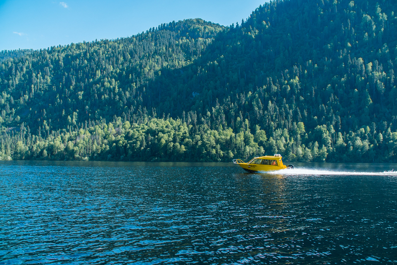 - пирс с организованными прогулками на катерах по Телецкому озеру
