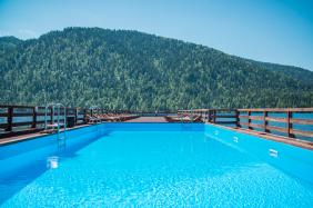 Бассейн с подогревом 6х15 м2, глубиной 1,5 м, с системой фильтрации воды. Температура воды +27-28 С.
