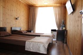 - Номера 1,2,5,6. Двухместный номер с двумя кроватями. В номере: 2 раздельные кровати, 1 дополнительное место (евро-раскладушка), телевизор, холодильник, шкаф, обогреватель, 22 м2. Ванная комната: WC, раковина, душевая кабина.