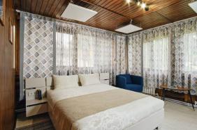 Номер улучшенной комфортности. Площадь 24 кв. м. В номере: двуспальная кровать, телевизор, холодильник, шкаф, чайный столик, электрочайник, чайная пара. Ванная комната: WC, раковина, душевая кабина.