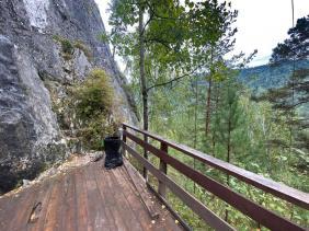 После "Ноздрей дракона" тропа приводит к "Арке желаний". Это Талдинская карстовая арка, имеющая статус памятника природы республиканского значения! Находится она на высоте 80 метров над уровнем реки Катунь. Говорят, что желания, загаданные под аркой, сбываются )).