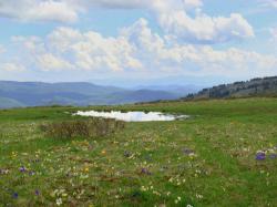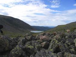 Можно забраться на гору Сарлык, полюбоваться панорамой дальних (и очень дальних) хребтов и Туюкской долины, затем спуститься на северное плечо и по ближайшему восточному отрогу к Верхнему Туюкскому озеру. Оно среднее в цепочке озер: 3 озера лежат севернее него, 3 южнее.