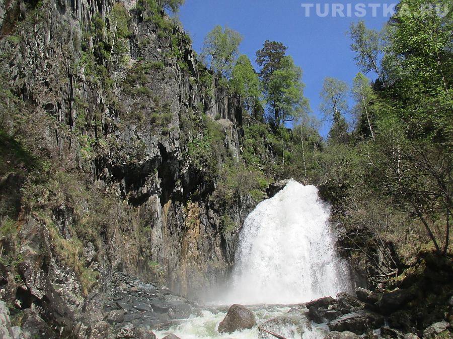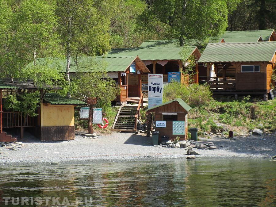 Если вы боитесь утомиться от поездки на катере по всему озеру с посещением всех водопадов (7-8 часов), то возьмите экскурсию к водопаду Корбу. Это займет 2,5 часа на быстроходных катерах и 5 часов на теплоходе "Пионер Алтая". Обычно по пути к водопаду Корбу посещают еще Каменный залив и водопад Киште. Если договоритесь с капитаном, то посмотрите на противоположном от Корбу берегу водопад Чедор. Корбу находится на восточном берегу Телецкого озера в 30 километрах от сел Артыбаш и Иогач. Это примерно 45-50 минут на катере. Туристы, отдыхавшие на юге Телецкого озера, на базах Карагай, Кырсай, Алтын-Туу, обычно посещают водопад при возвращении в Артыбаш и Иогач.