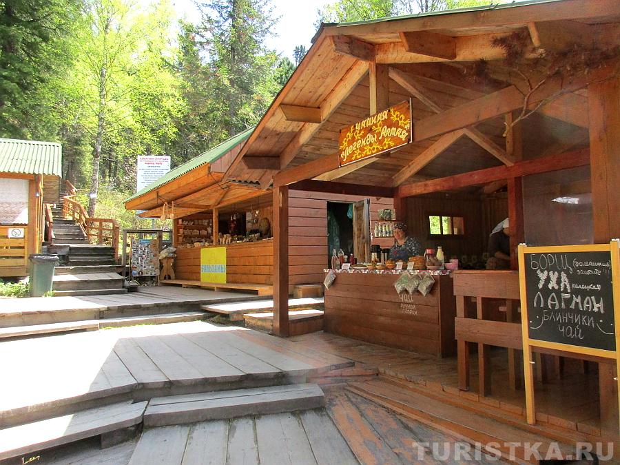 В начале тропы к водопаду находятся сувенирные ларьки и небольшие закусочные.