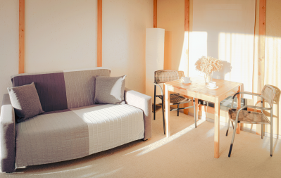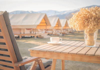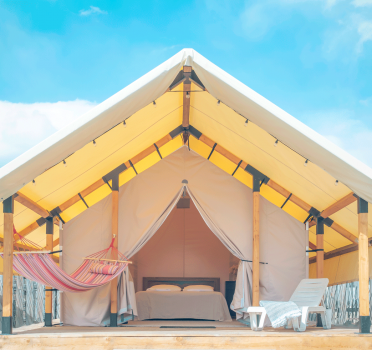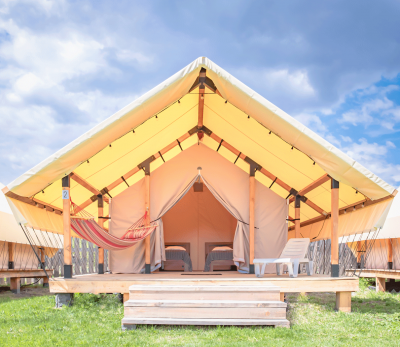 Однокомнатные комфортабельные тентовые дома с террасой, 12 кв м.