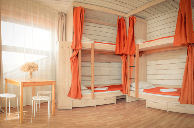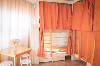 - Для каждого спального места: небольшой шкафчик для вещей, индивидуальный светильник, розетка, шторка. Полотенца.