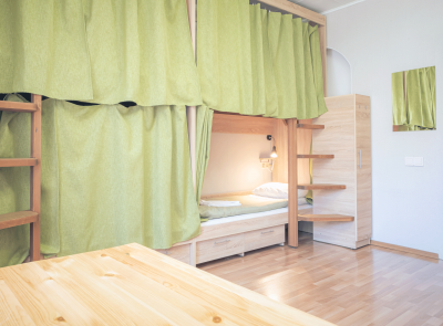 Спальные места: 8 основных - 4 двухъярусные кровати. Есть возможность поставить 1 дополнительное (еврораскладушка)