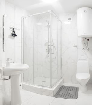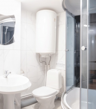 - Собственная ванная комната в номере: раковина, унитаз, душевая кабина.