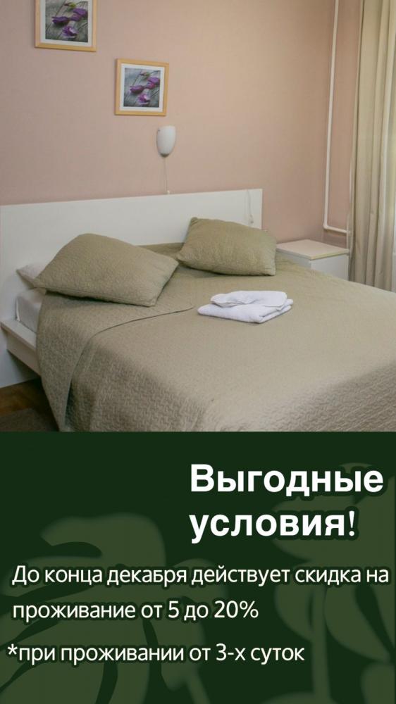 Для постоянных клиентов (постоянный клиент – это клиент, который в течение полугода набрал свыше 20 суток за проживание) – скидка 15%.