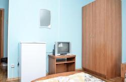 Две односпальных кровати, шкаф, стол, телевизор, внутренний телефон, чайник. Душ, WC, раковина на этаже