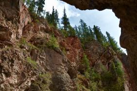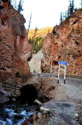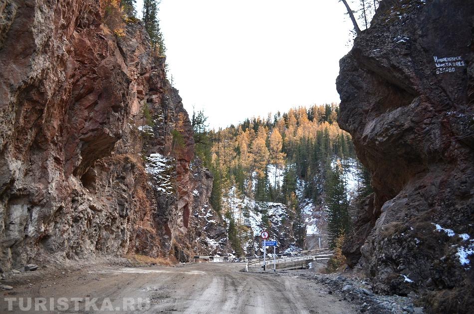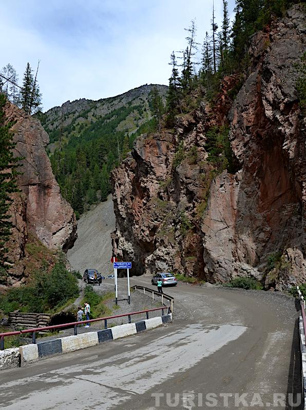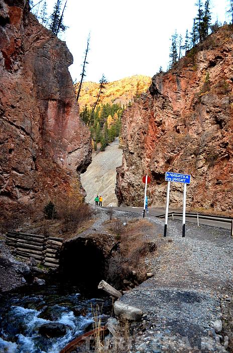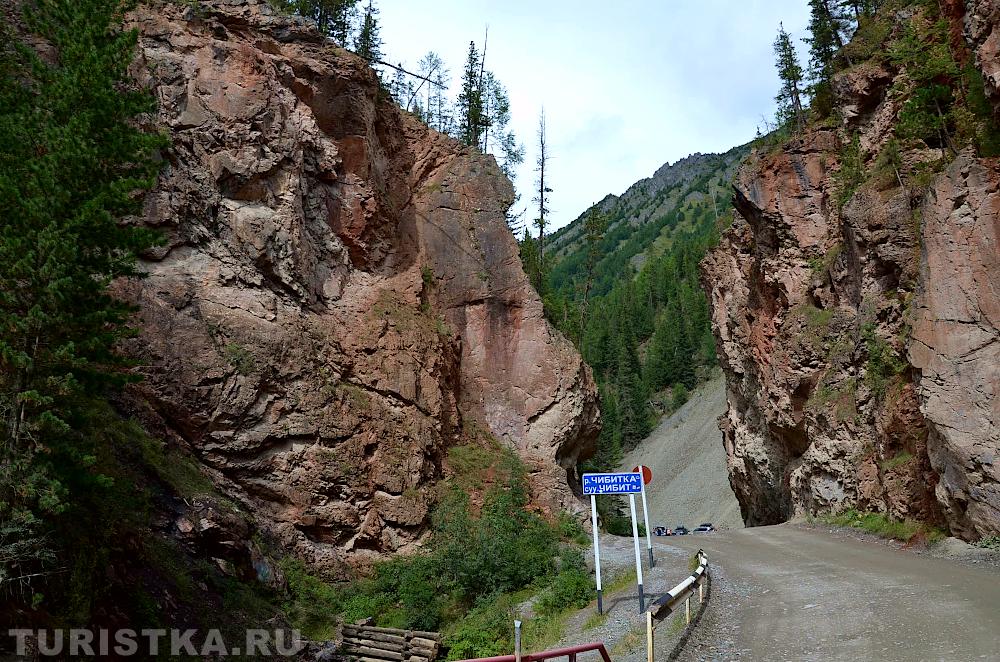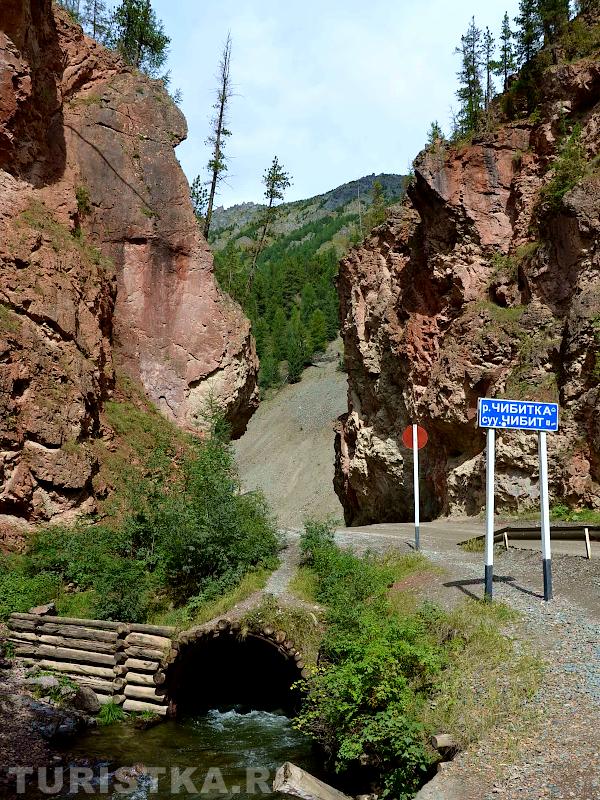 В нескольких километрах от села Акташ по трассе Акташ - Усть-Улаган дорога, пересекая по мостику реку Чибитку, проходит между высоких скал с ярко-выраженным красноватым оттенком. Это место носит название "Красные Ворота" и входит в число памятников природы Республики Алтай. Изначально в скалах был узкий проход. Во время строительства дороги с помощью взрывов проход был расширен.