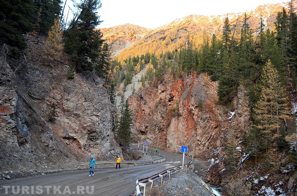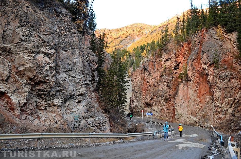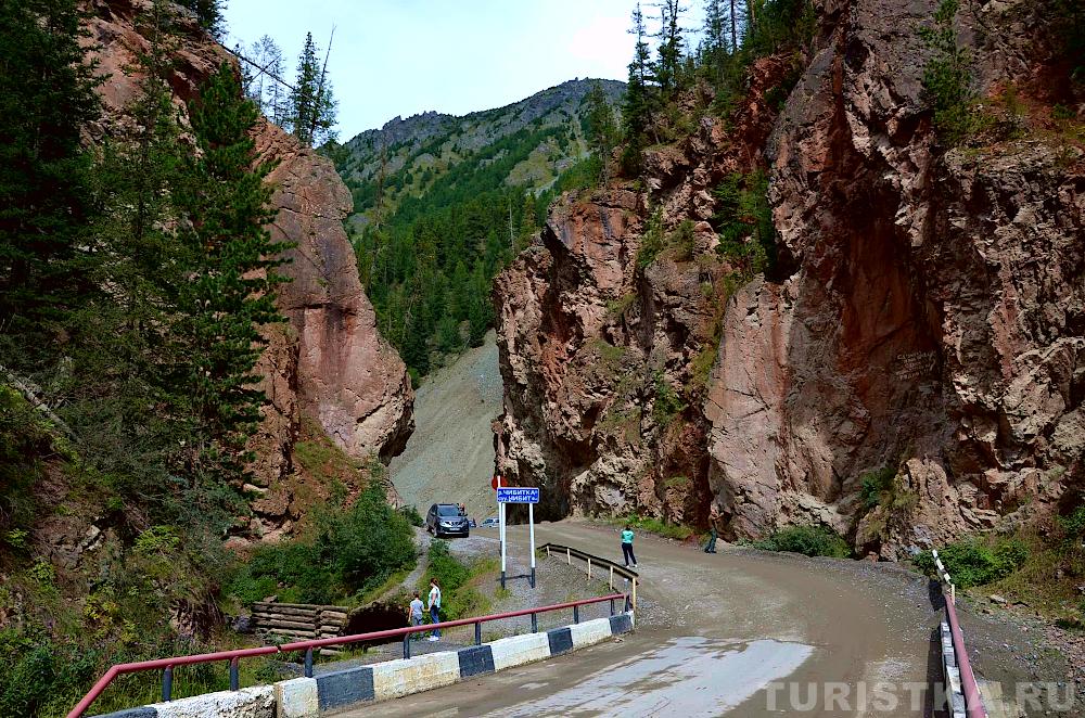 За Красными воротами дорога идет на подъем на Улаганский перевал. Километра через четыре от Красных ворот дорога в направлении села Улаган проходит вдоль Мертвого озера (Чейбеккель) и еще через несколько километров подъема вдоль озера Узункель, которые также являются памятниками природы Республики Алтай.
