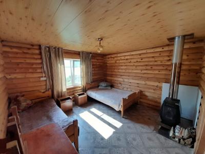 «Дом рыбака» 8000 р./дом. Теплый дом из бруса, с печкой. В доме 1 широкая двуспальная кровать и угловой диван (раскладывается). Санузел (унитаз и раковина) в доме. Есть холодильник. В доме могут проживать до 4-х человек.