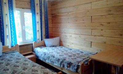 Теплый 2-этажный дом из бруса. Корпус гостиничного типа. На каждом этаже по 5 номеров. В доме имеются одноместные, двухместные и трехместные номера (