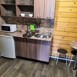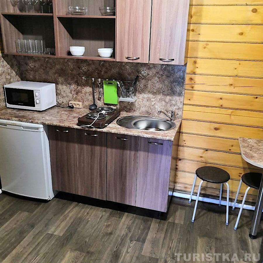 Номер № 3 двуспальная кровать, и диван книжка раскладывается шкаф, стол, 2 стула, телевизор, Санузел, душ, фен. Общая кухня с номеров 4.