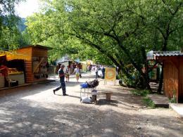 На всем протяжении парка местные жители торгуют сувенирами, кедровыми орехами и медом.