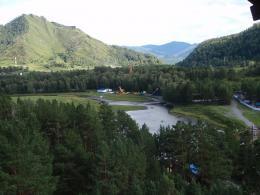 Удачный панорамный вид на Чемальское водохранилище, ГЭС и на само село Чемал открывается с правой вершины горы Верблюд.