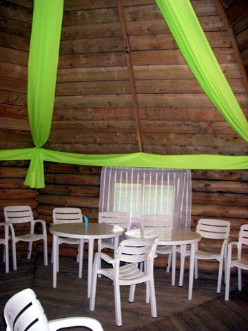 Любители свежего воздуха могут пообщаться в корьевом аиле с костровищем. Если развести там большой костер из сухих дров, то весь дым уйдет в верхнее отверстие, будет тепло и сухо. Удобства и умывальники находятся на улице, на территории есть летний душ и баня. В столовой радушные хозяева предложат отдыхающим блюда национальной кухни и три раза в день накормят их до отвала. Но можно готовить и самостоятельно на костре.