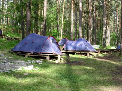 Гости базы Горный Егерь размещаются в 10 четырехместных и 10 двухместных летних домиках, выстроенных из сосны и кедра. Симпатичные маленькие домики гармонично вписываются в окружающий пейзаж берега Катуни, не нарушая природного очарования уютной поляны. Кроме домиков, летом дополнительно устанавливаются туристские палатки на деревянных настилах, защищающих от сырости. Молодые туристы находятся под постоянным наблюдением медицинских работников, безопасность обеспечивает надежная охрана.