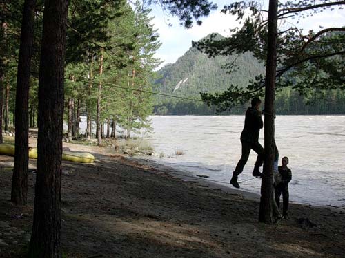 Программа активного детского отдыха в лагере Горный Егерь включает сплавы по Катуни, скалолазание, конные прогулки, горные велосипеды, восхождения на вершины, экскурсионные поездки на Чемальскую ГЭС, к действующему храму на острове Патмос и к другим достопримечательностям, вечера у костра с песнями под гитару и рассказами легенд и мифов Алтая. А еще здесь вас научат вязать настоящие туристские узлы!