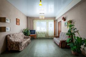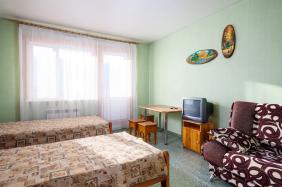 В номере: двуспальная кровать, ТВ, лоджия, холодильник, чайник, посуда (большая комната); две полутороспальные кровати (маленькая комната) шифоньер, прикроватная тумбочка, журнальный столик, табуретки.