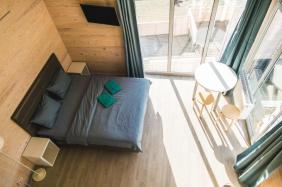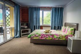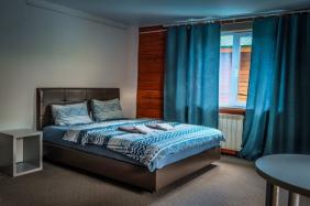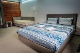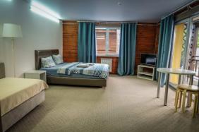 - Двухкомнатный Семейный Комфорт большой как квартира, 40 м кв. также со всеми удобствами, одна комната проходная, для размещения гостей есть большая кровать, еще кровать и диванчик шириной 120 см.