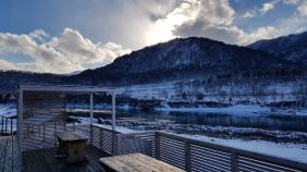 С территории и с беседок открывается великолепный вид на реку и горы.