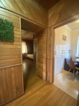 В номерах: двуспальная кровать + 1 доп. место (раскладушка), кухонный уголок, обеденная зона и санузел с горячей и холодной водой. Имеется все необходимое: плита, холодильник, микроволновая печь, чайник, посуда. 1 общая душевая на первом этаже.