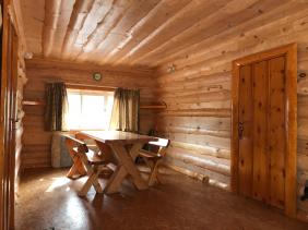 На каждом этаже по 2 номера и общая зона с большим столом со скамьями.