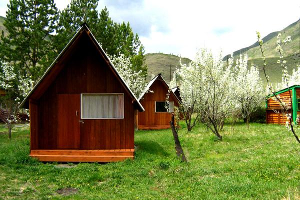 База отдыха "Янтарный сад" расположена рядом с Чуйским трактом, в 12-ти километрах от села Онгудай на берегу горной реки Урсул.