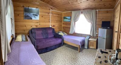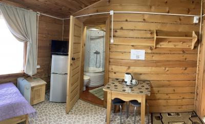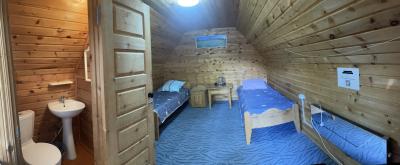 - двухэтажный домик: два двухместных номера, на первом этаже номер со всеми удобствами, на втором этаже - с санузлом без душа. Есть возможность размещения дополнительного спального места. Стоимость домика 7000 руб/сутки,